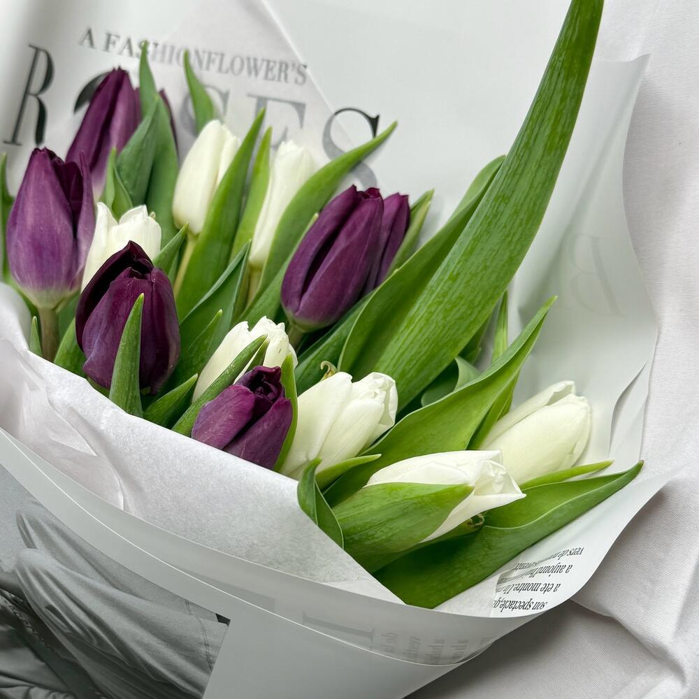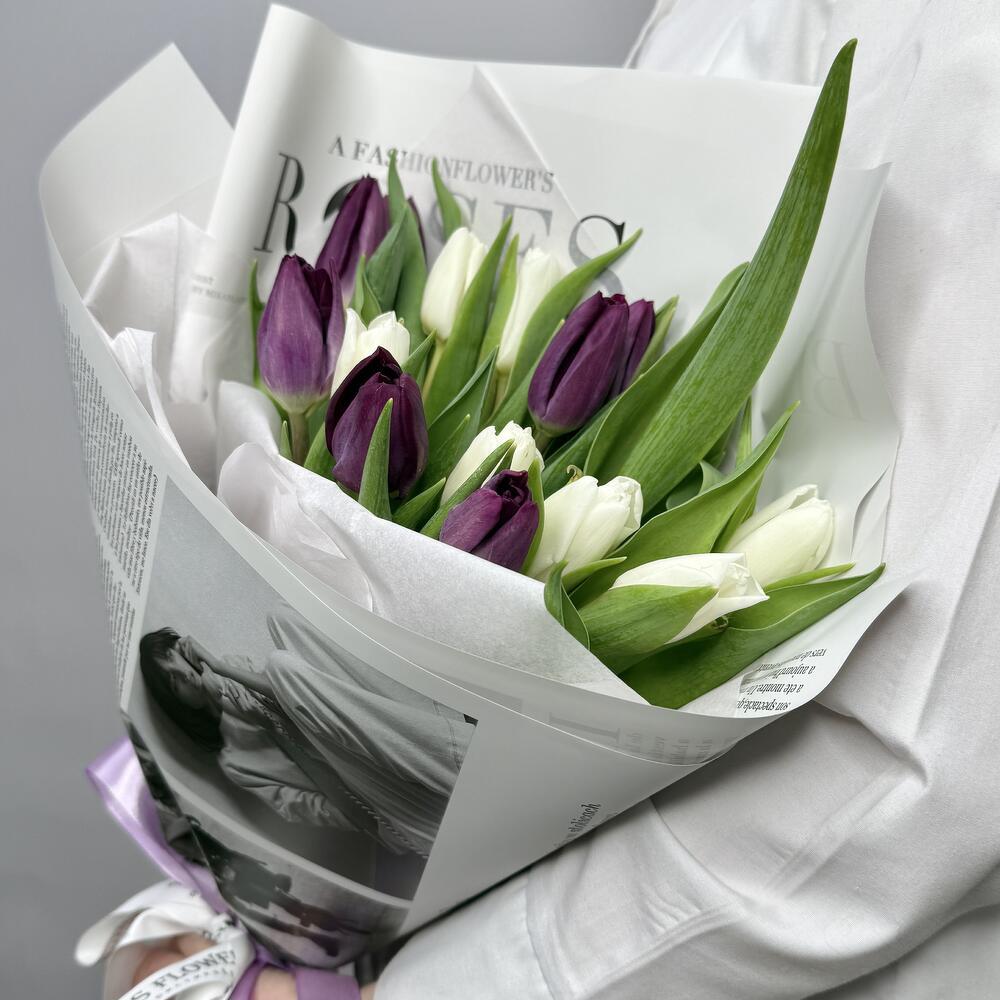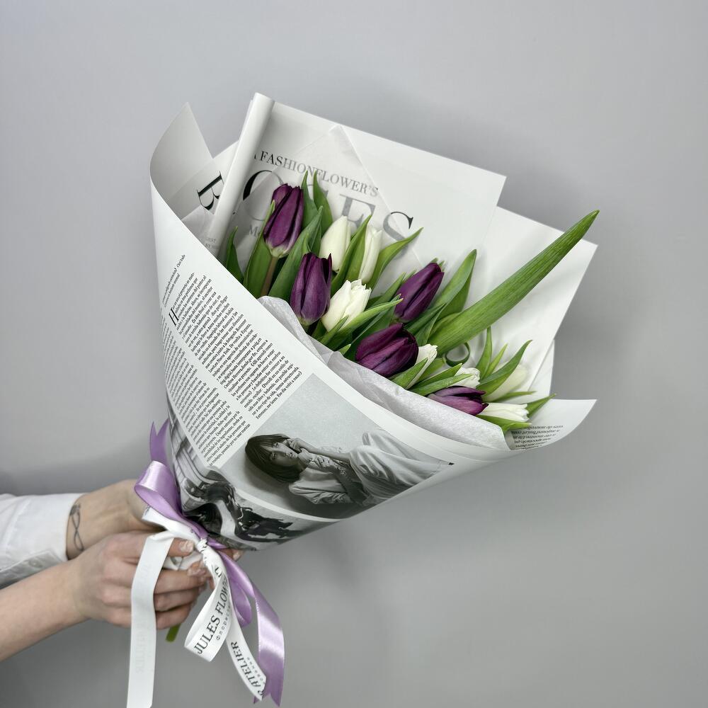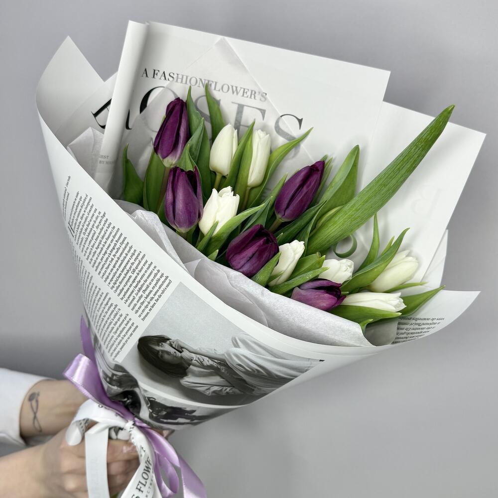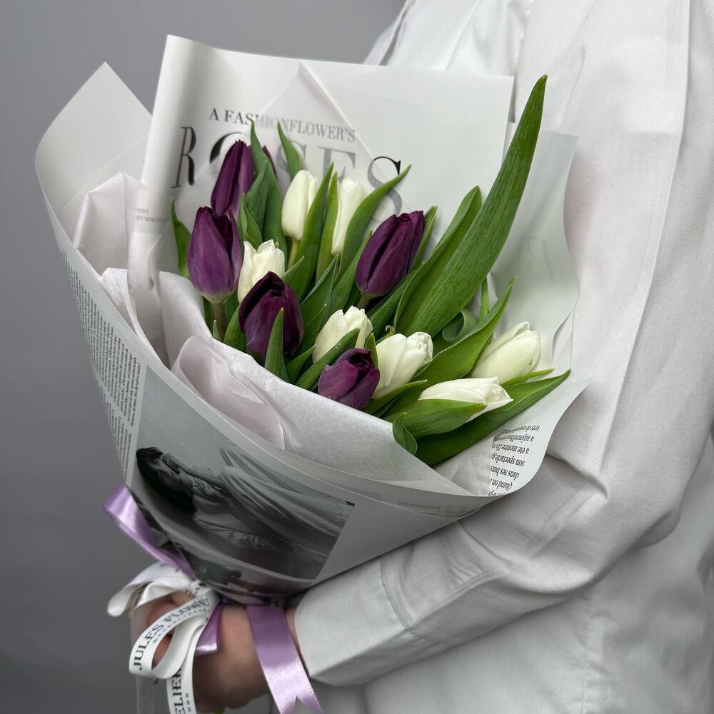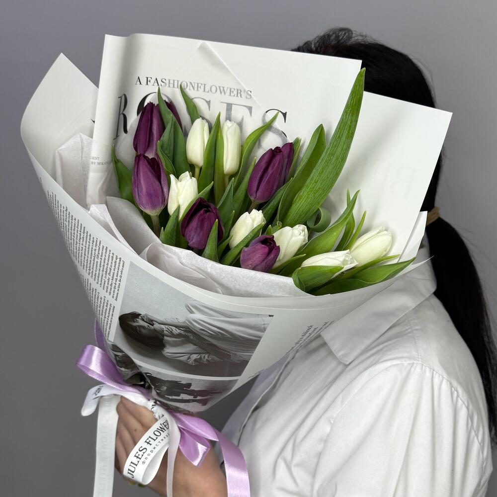 15 тюльпанов микс в стильной упаковке