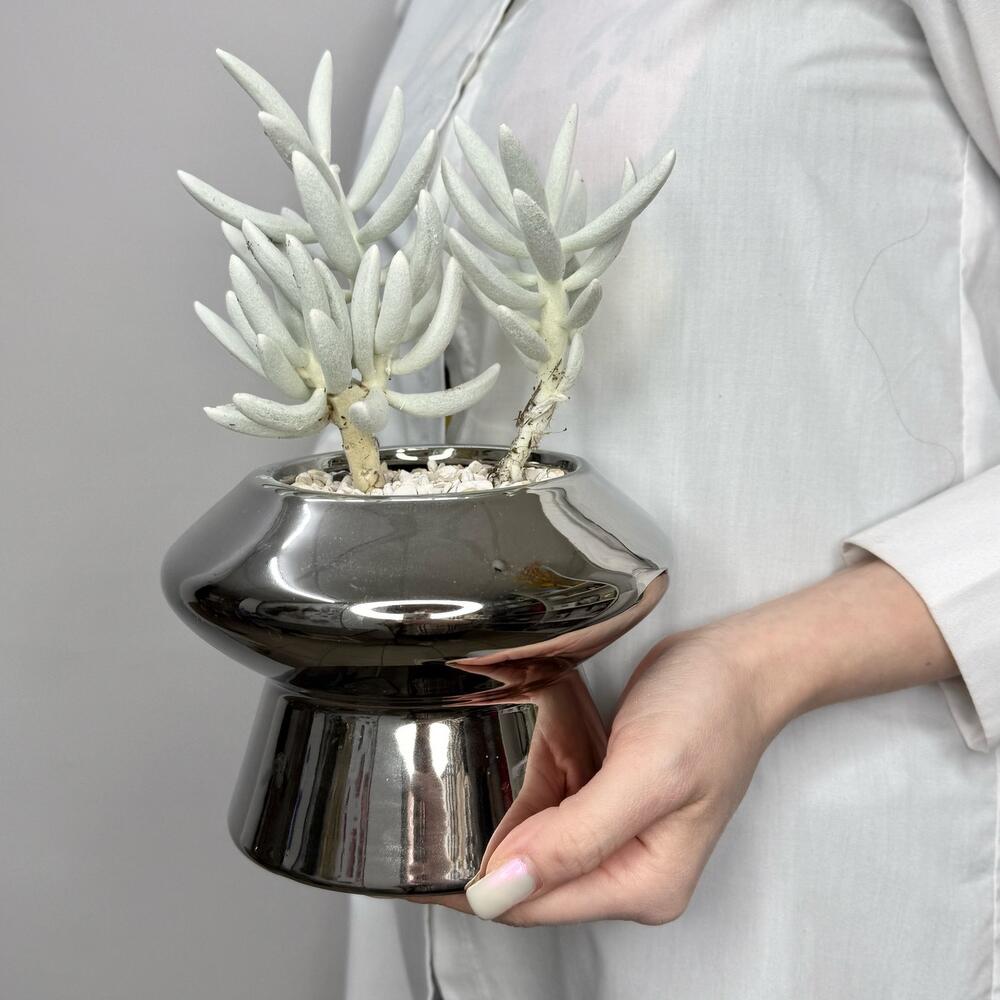 Крассула мягкая “Заячьи ушки” – нежный суккулент с бархатистыми листьями, напоминающими ушки зайцев. Легкое в уходе растение, прекрасно переносит засуху, идеально для декора.