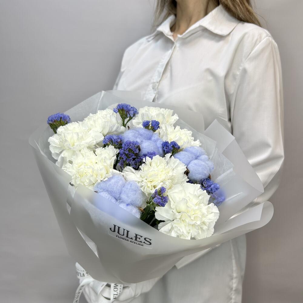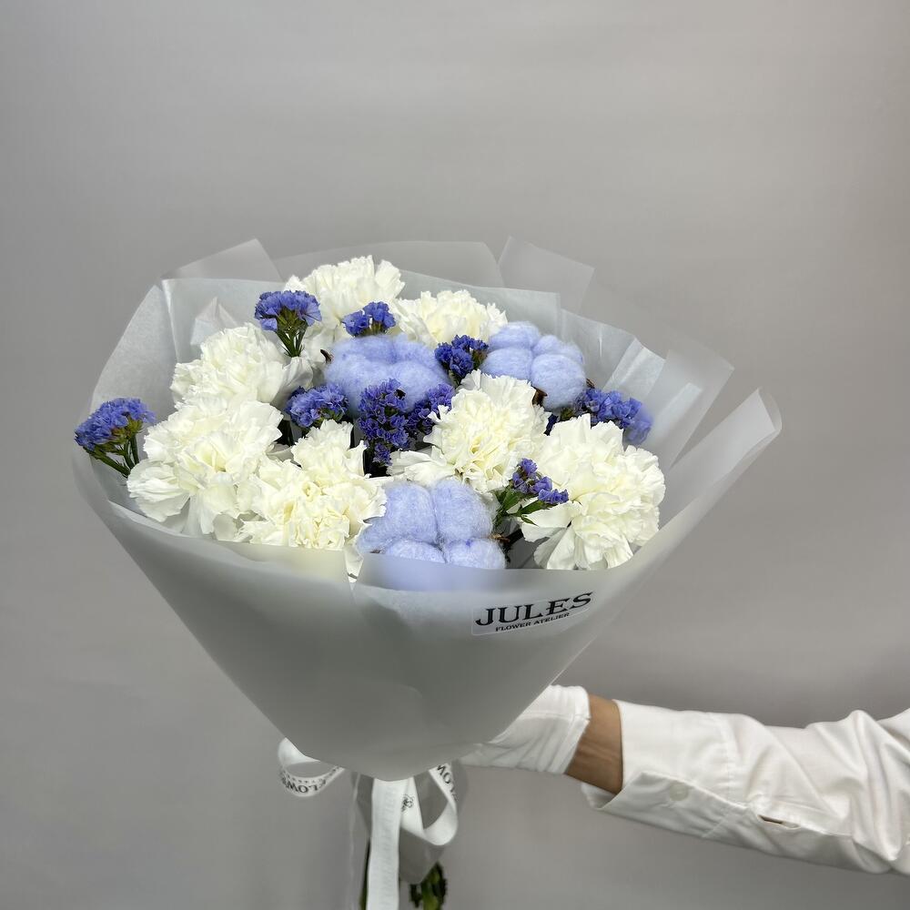 Каждый букет — это уникальная история, воплощённая в гармонии цветов, форм и ароматов. Мы создаём композиции, которые дарят радость, вдохновение и тепло. Независимо от повода — будь то праздник, романтический вечер или просто желание порадовать близких, наши букеты станут идеальным выражением ваших чувств. Свежие, стильные и продуманные до мелочей, они подчеркнут вашу индивидуальность и сделают любой момент особенным. И, конечно же, в вашем заказе вы найдете не только этот неповторимый букет, но и нашу фирменную открытку, которая добавит особую нотку тепла, инструкцию по заботе о цветах, чтобы сохранить их свежесть, и даже подкормку для цветов, чтобы они долго радовали вас своей красотой.