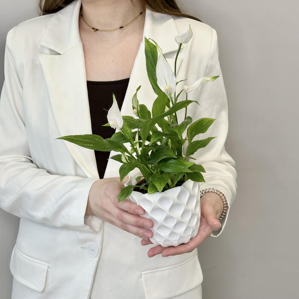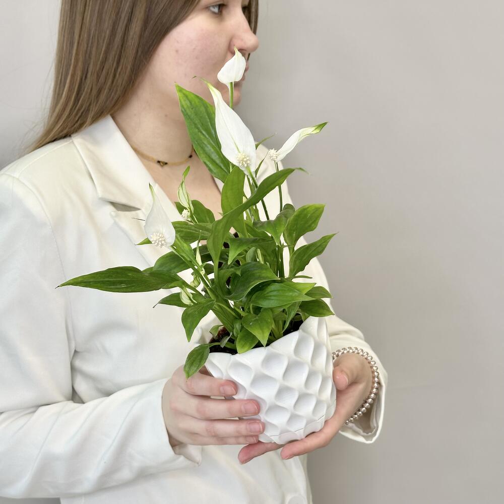 СПАТИФИЛЛУМ: ЗЕЛЁНЫЙ ГАРМОНИЗАТОР СВЕТ Яркий рассеянный или полутень. Прямое солнце вызывает ожоги. Хорошо себя чувствует даже в глубине комнаты. ТЕМПЕРАТУРА +20…+25°C. Боится сквозняков и резких перепадов. Зимой — не ниже +16°C. ПОЛИВ Любит воду, но без фанатизма. Поливай, когда верхний слой грунта подсохнет. Летом чаще, зимой — реже. Не оставляй воду в поддоне. ВОЗДУХ Высокая влажность — его стихия. Опрыскивай листья, особенно в отопительный сезон. Любит душевые процедуры. ПОДКОРМКА Весной и летом — раз в 2 недели удобрение для цветущих. Осенью и зимой — раз в месяц или меньше. ЦВЕТЕНИЕ Белые “паруса” появляются с весны и до осени. При хорошем уходе — круглый год. ПЕРЕСАДКА Раз в год весной. Любит тесноватый горшок — в нём охотнее цветёт. БОИТСЯ — Сухого воздуха, — Переувлажнения, — Сквозняков, — Хлорированной воды.
